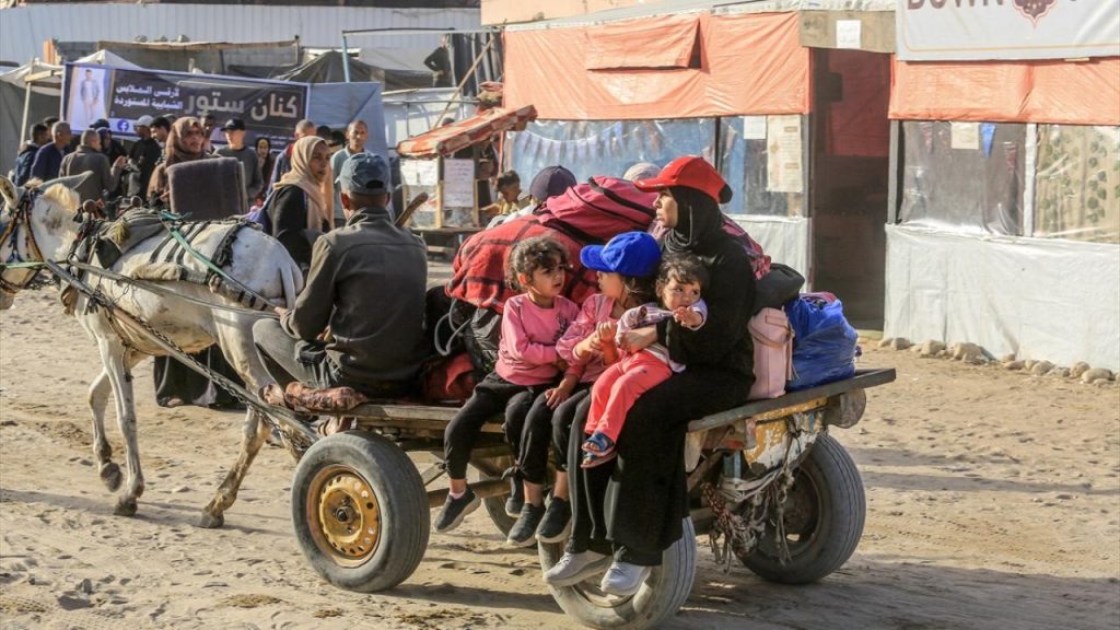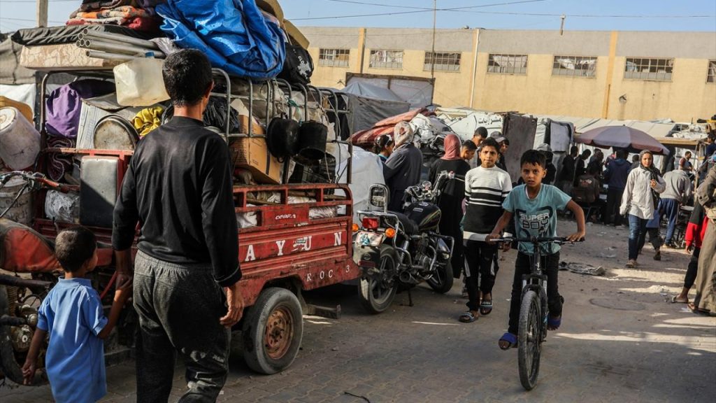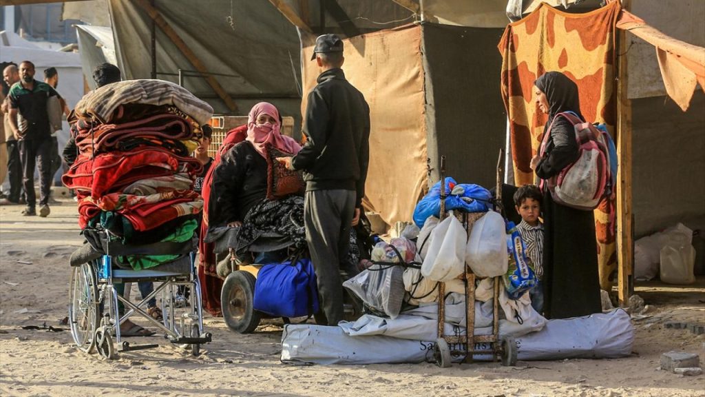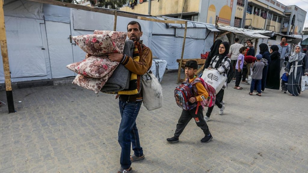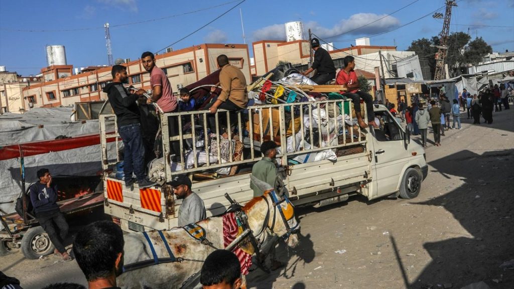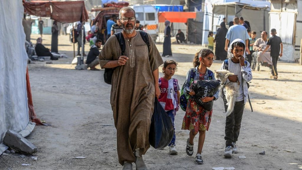 İsrail ordusunun Gazze Şeridi’nin Han Yunus kenti doğusundaki Filistinlilere yönelik tahliye çağrısının ardından bölgede bulunanların yaşadıkları ev ve çadırları terk ederek kentin batısında Mevasi’ye doğru yola çıktı.