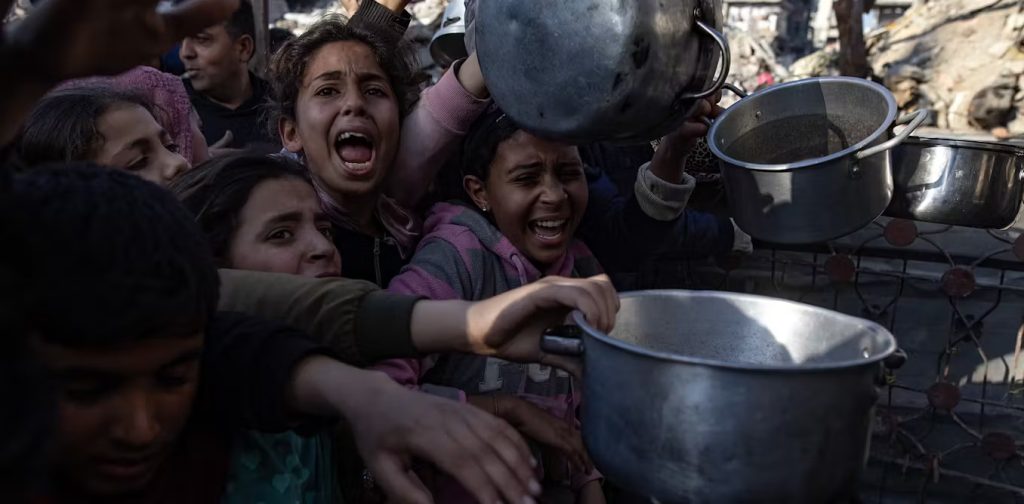 2 Mart’ta İsrail, Gazze’ye insani yardım girişini engelledi ve açlık ile susuzluğu askeri strateji olarak kullandı. 15 Mart’ta UNICEF’in raporuna göre, Gazze Şeridi’nin kuzeyinde 2 yaş altı çocukların %31’i akut yetersiz beslenme sorunu yaşıyor. Ayrıca, akut yetersiz beslenmeye bağlı çocuk ölümlerinde “dramatik bir artış” gözlemlendi.